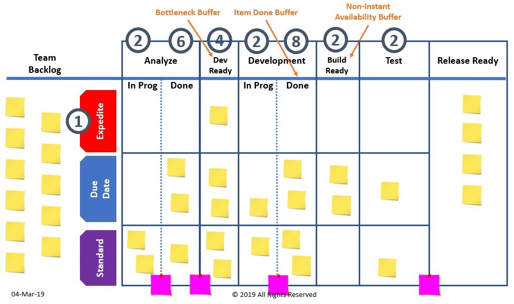 - Horizontal WIP limit of “1” for the Expedite swim lane